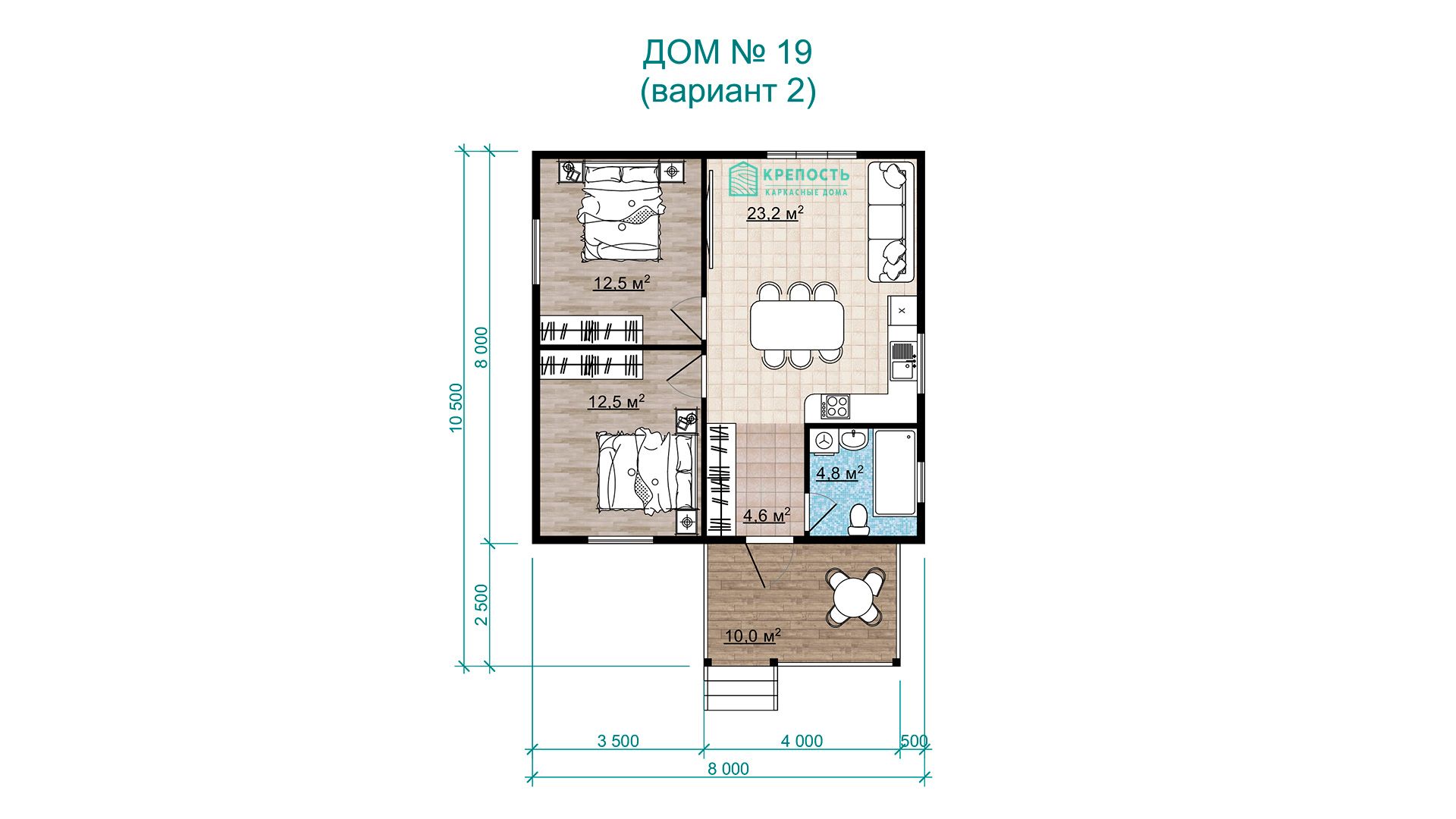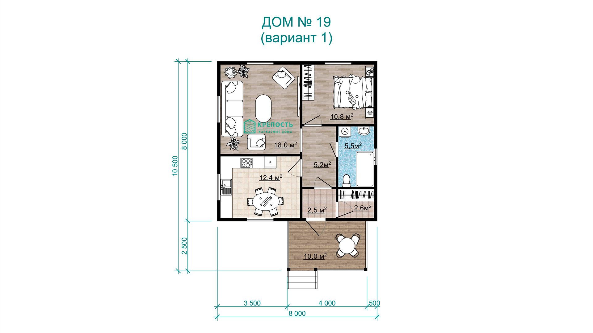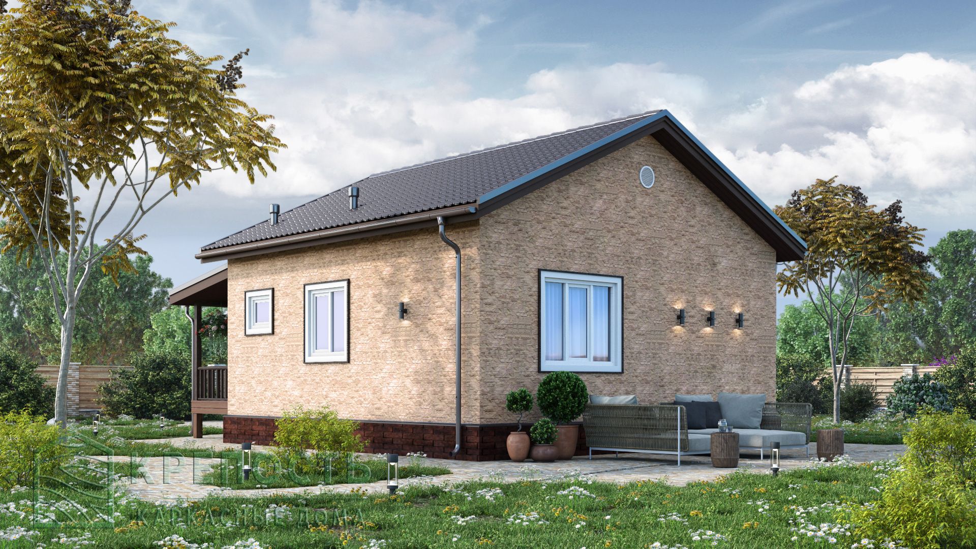 Проект одноэтажного каркасного дома, размером 8х8 м. Максимум полезной площади и удобное расположение помещений. В доме имеется кухня, гостиная, санузел и уютная спальня. Такой дом подойдет для комфортного проживания небольшой семьи. Внешняя отделка дома сайдинг. По желанию Заказчика, вариант отделки дома можно изменить.