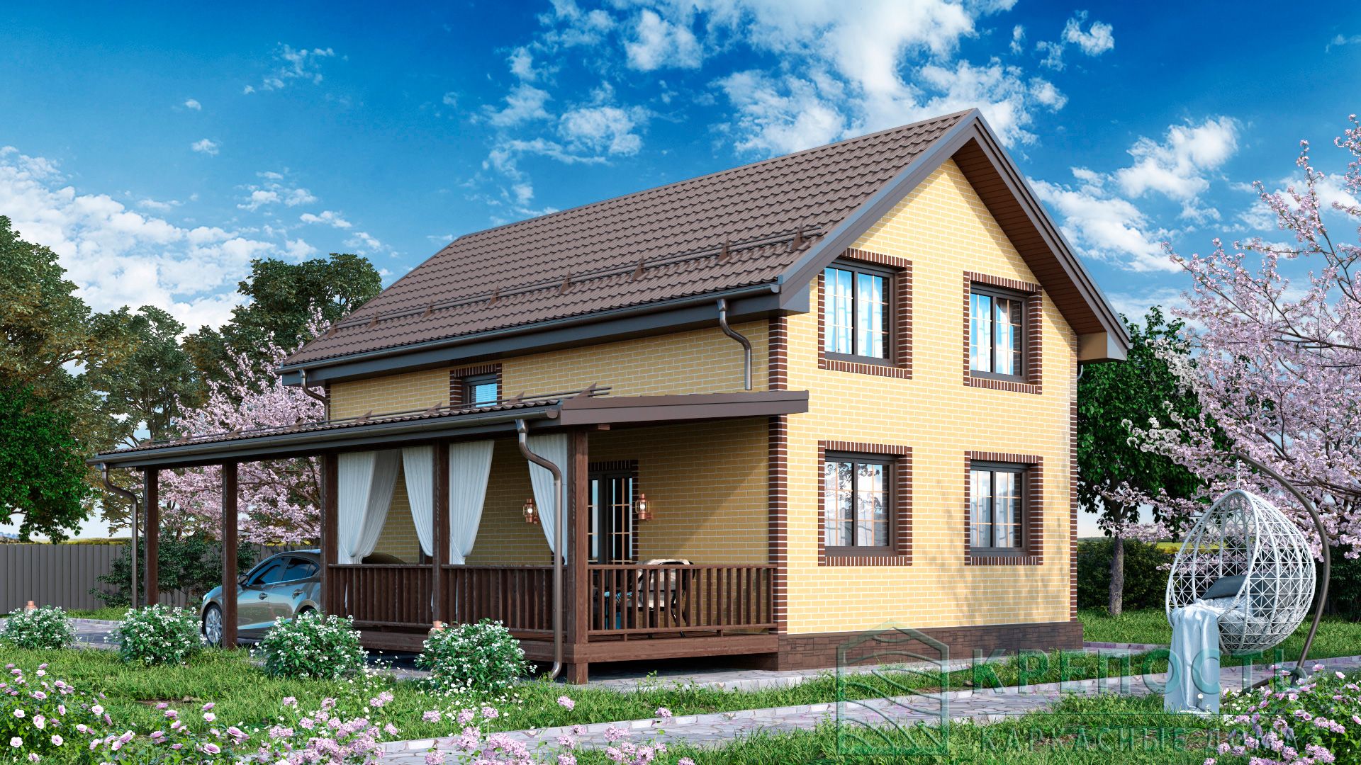Практичный дом, размером 6x10 м., с мансардным вторым этажом, с эргономичной планировкой, с навесом для автомобиля и комфортной террасой. Максимум полезной площади и удобное расположение помещений. На первом этаже – просторное помещение кухни-гостиной, с выходом на террасу, гостевая спальная комната или рабочий кабинет, санузел, кладовая и тех. помещение. А на втором этаже – небольшой холл, три спальные комнаты, одна из которых с гардеробной, а также, для удобства, на втором этаже расположен санузел. Такой дом подойдет для комфортного проживания большой семьи. Внешняя отделка дома - виниловые панели Fineber коллекции Кирпич Баварский.