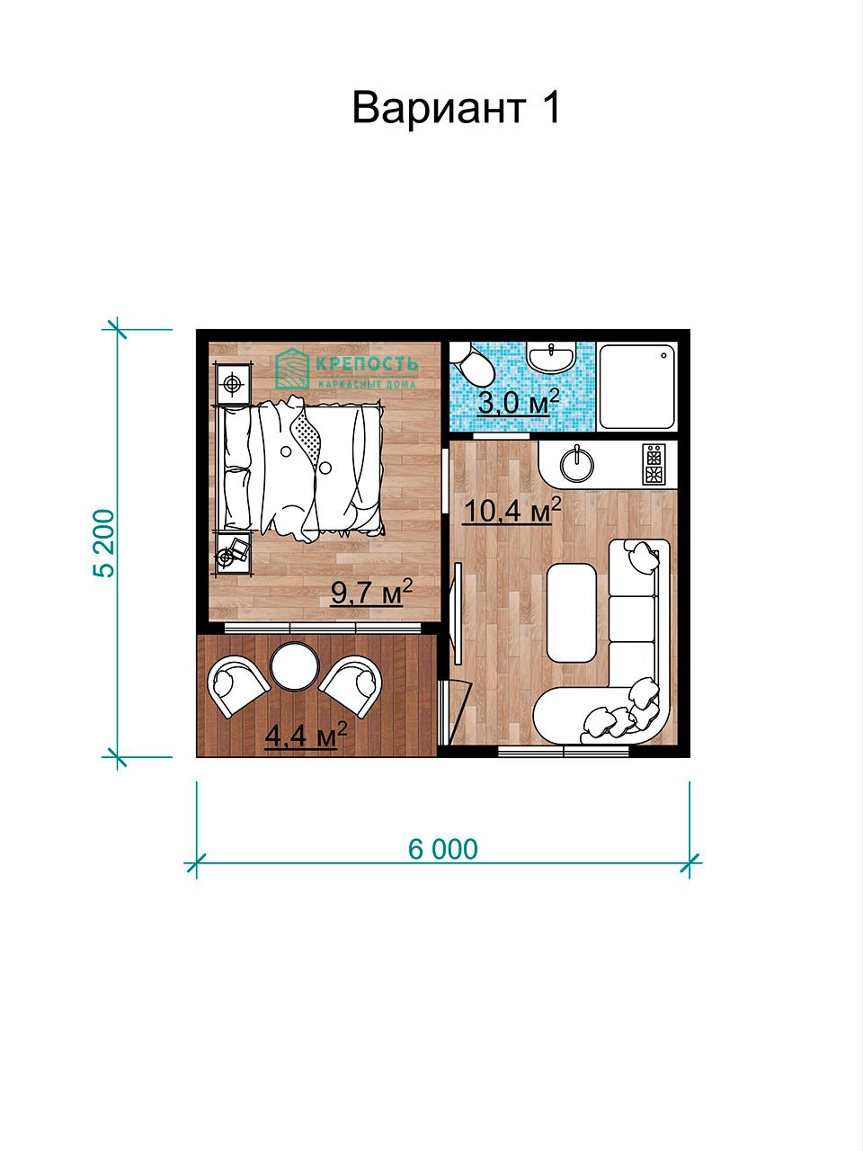 • Терраса: 4,4 кв.м.