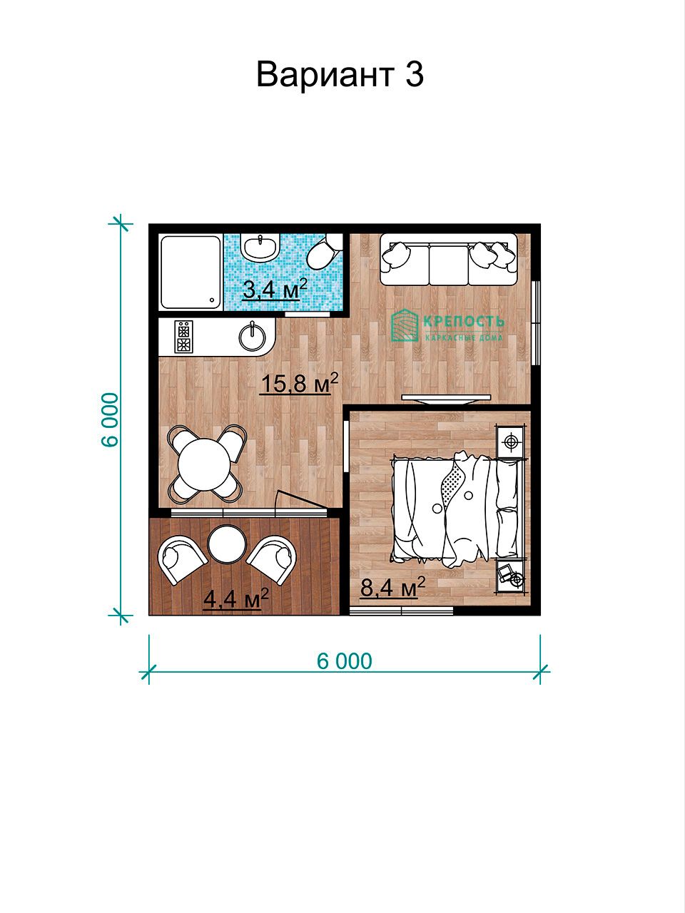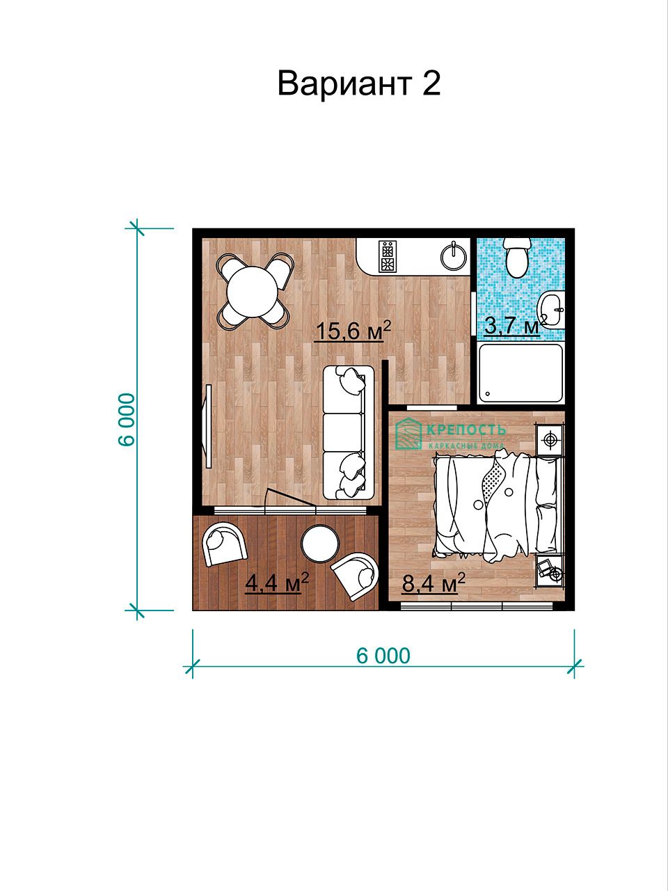 • Размеры дома: 6х6 м.